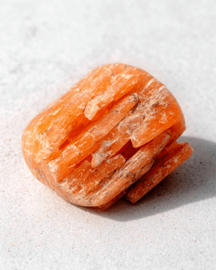 La selenita naranja es, en ese sentido, una piedra de autocuidado profundo. Nos enseña que también el descanso, el placer, el anclaje y la conexión con lo sensorial pueden ser sagrados.